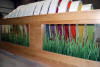 Corian engraved thermaformed walls with acrylic portholes.